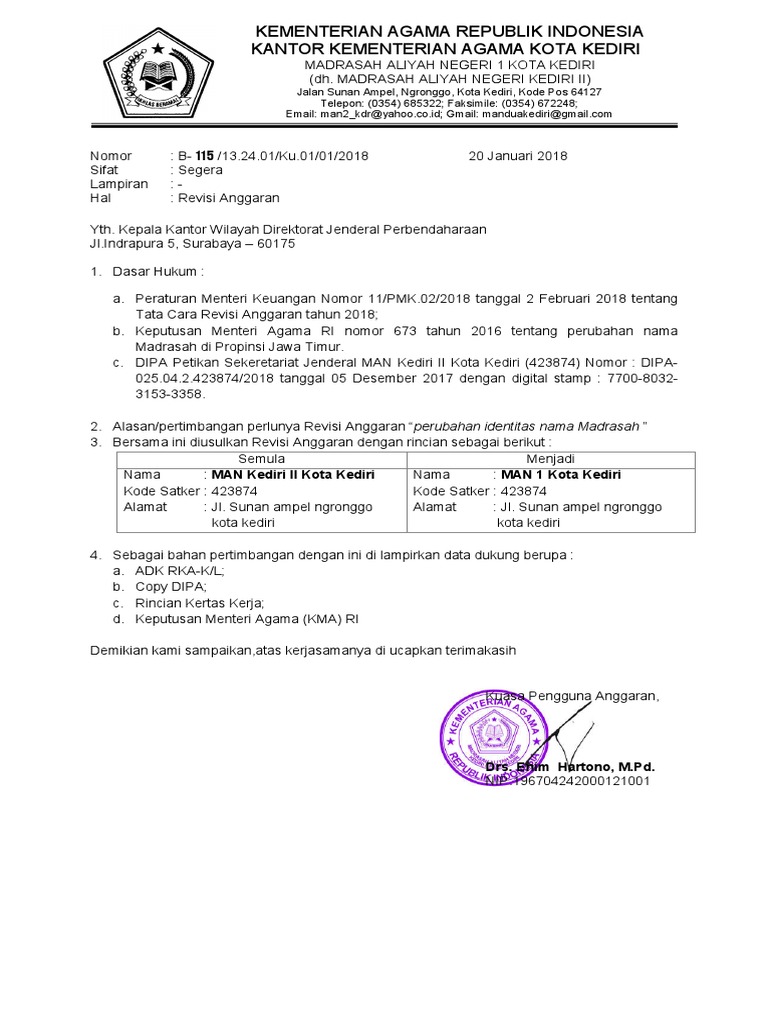 Contoh Format Surat Pengantar Penghematan Anggaran